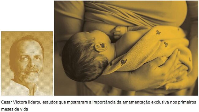 Victora lembra que essas pesquisas vieram na esteira de um estudo publicado no fim dos anos 1980, que mostrou que a amamentação exclusiva nos primeiros seis meses de vida protege contra infecções infantis. “Na época, esse conceito ainda não era amplamente reconhecido”, diz. A publicação teve grande repercussão e suas conclusões foram confirmadas em estudos do Peru e das Filipinas. “Políticas públicas nunca mudam com base em um único estudo. Com o acúmulo de evidências, em 1991 a ONU [Organização das Nações Unidas] e o Unicef [Fundo das Nações Unidas para a Infância] passaram a recomendar o aleitamento materno exclusivo nos primeiros seis meses. Hoje, essa proposição é adotada por cerca de 140 países.”